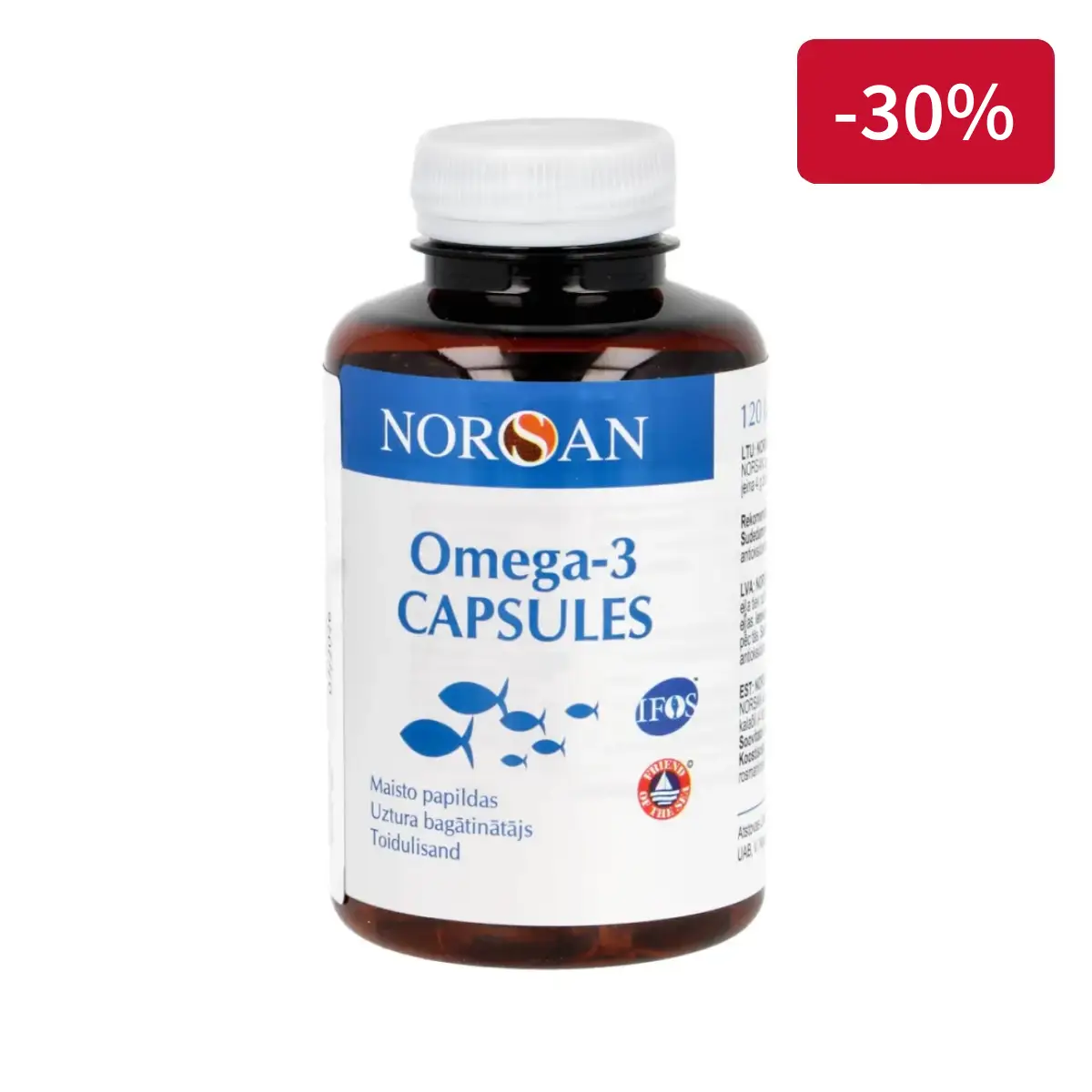 Žuvų taukai OMEGA-3, 120 kapsulių, „Norsan“, 164 g